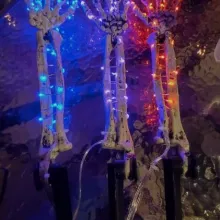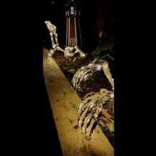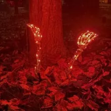Transform your Halloween decorations with our spine-chilling Skeleton Arm Stakes, wrapped in 40 bright LED lights. These stakes are not just any ordinary Halloween adornment; they are designed to bring a ghoulish charm to your festive celebrations. Perfect for setting a hauntingly fun atmosphere at your Halloween party.