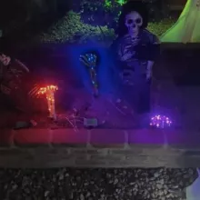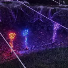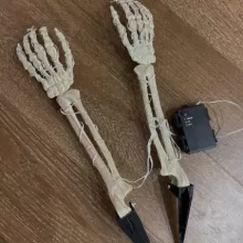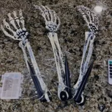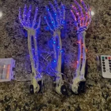 These bone arms were an ideal enhancement to my yard decor for Halloween, complete with stakes for easy insertion into the ground, battery operation, a remote for changing light sequences, bendability, and a timer.