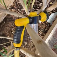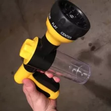 This hose nozzle does everything that it should. The spray patterns all work, and the handle is comfortable to hold. I prefer this style that turns on the water with the lever, rather than the pistol grip that you have to squeeze.