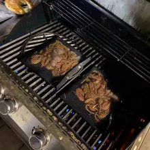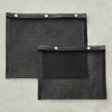 This non-stick grill mesh bag is so great! We bought it to use on our grill. Instead (for now!) we use these in our oven to roast veggies, and they work great! Nothing falls through, and the veggies roast evenly, without needing to be turned much since the bag has the tiny mesh holes. This is sturdy, well made, and my favorite part, dishwasher safe, and easy to clean!! I highly recommend!