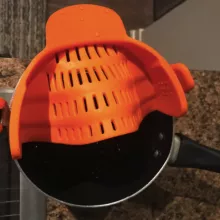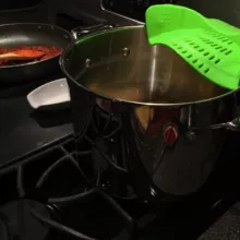 I wasn't really sure about this gadget, but the spouse was always draining some fat from meats in a frying pan so I thought I'd help him out with a fun thing. Turns out I use it more than him and for all my pastas, potatoes, etc. I pretty much gave up on my colanders and other strainers unless it is something very fine I must strain. The thing sticks on pretty much any pot or pan I have and will mostly hold the items in if it isn't too full, even my large pot for noodles. The reason I use it instead of everything else is how easy it is to use and then to clean. My sink doesn't need to be empty to accommodate setting a strainer in it, this tool basically rinses clean with hot water and does not leave pasta bits and potato starches all over like the steel colander or the foldable one I have made of pretty much the same material. Certainly some water is left behind if there is a large volume of stuff in the pot, but setting it back on the hot burner that is now cooling takes care of this perfectly. The compact size of it makes it easy to store and again, to clean! Bonus: it fits the Instant Pot too