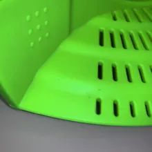 I waited awhile to give my review. I wasn't sure how often I would use this but turns out " a lot". It strains hot foods very easily. I first used it for my pinto beans and then I tried it on Spaghetti. I was really amazed that I didn't lose 1 single noodle to the sink. Would not use it for rice as the slots are to wide. I used to use the lid to drain but would burn my fingers or lose food down the sink. This is perfect.
